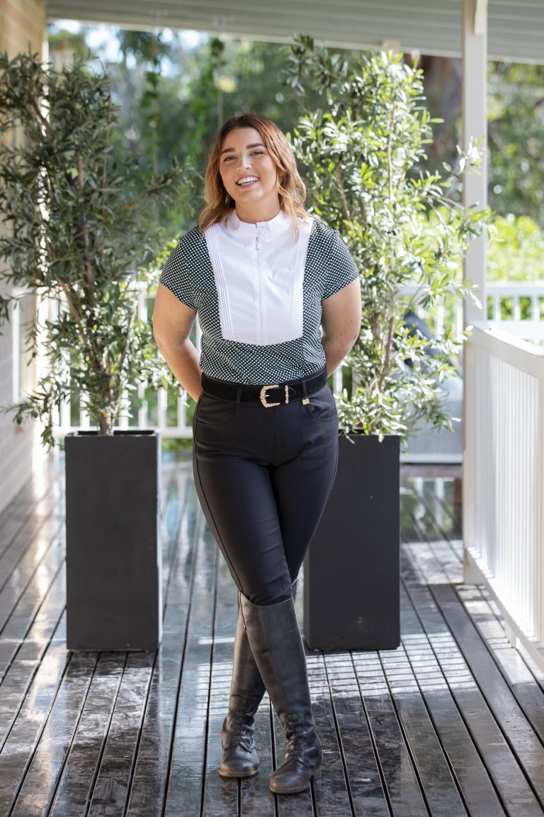 This short sleeve open weave spot show shirt is a striking shirt on its own but also looks amazing under a hack or jumping jacket. Featuring a front zip and pearl button it is a great shirt to wear everyday for sun protection or for a classy look in the ring.